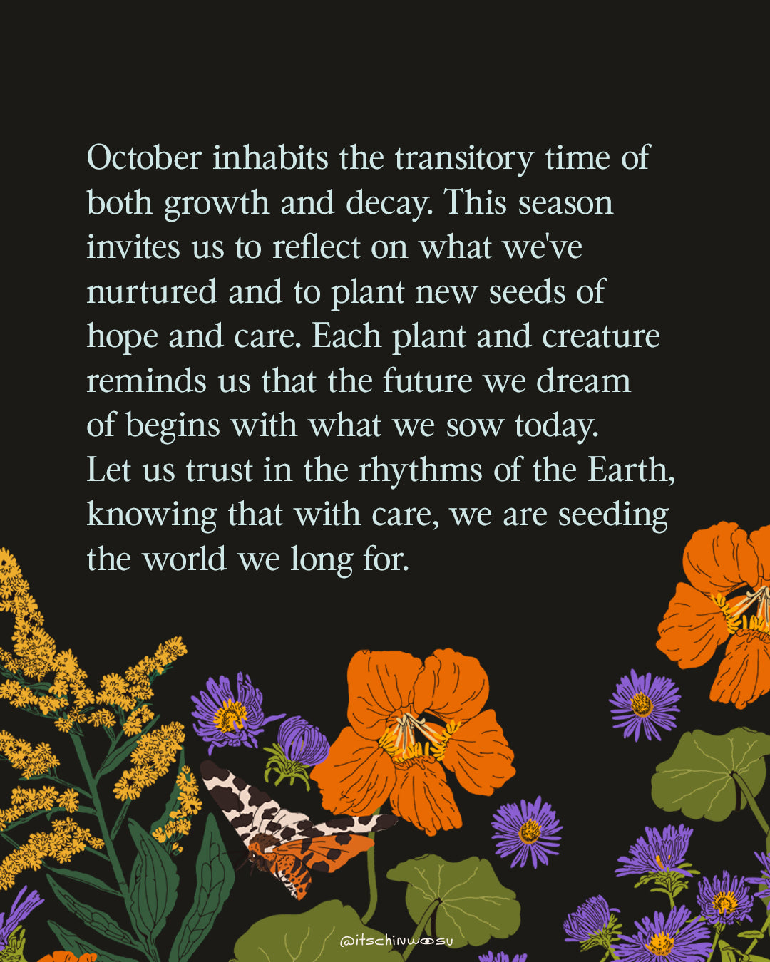 This season invites us to reflect on what we've nurtured and to plant new seeds of hope and care. Each plant and creature reminds us that the future we dream of begins with what we sow today. Let us trust in the rhythms of the Earth, knowing that with care, we are seeding the world we long for.