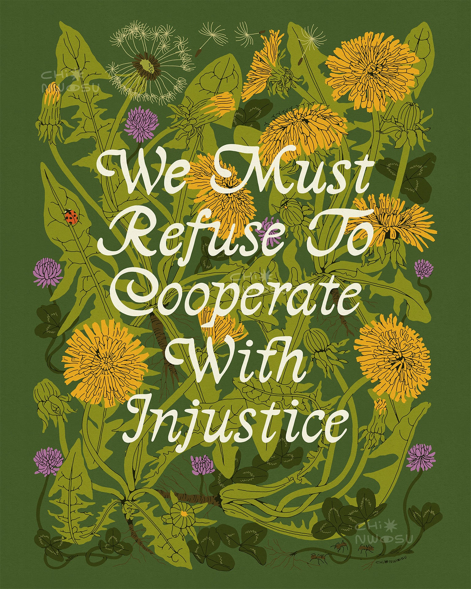 We must refuse to cooperate with injustice. We, the people of conscience, who recognize the inherent dignity in all beings—have never stopped fighting and we never will. We must refuse with every fiber of our being.